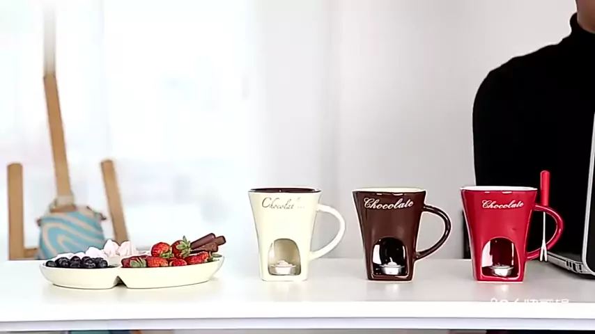 Momentos doces a dois! Aqueça seu chocolate favorito nesta charmosa caneca fondue com garfo, perfeita para compartilhar. Ideal para uma noite especial! 💑🍓 👉Comente EU QUERO que eu te envio o LINK👈 #fondue #casal #momentosdoces #porcelana #chocolate