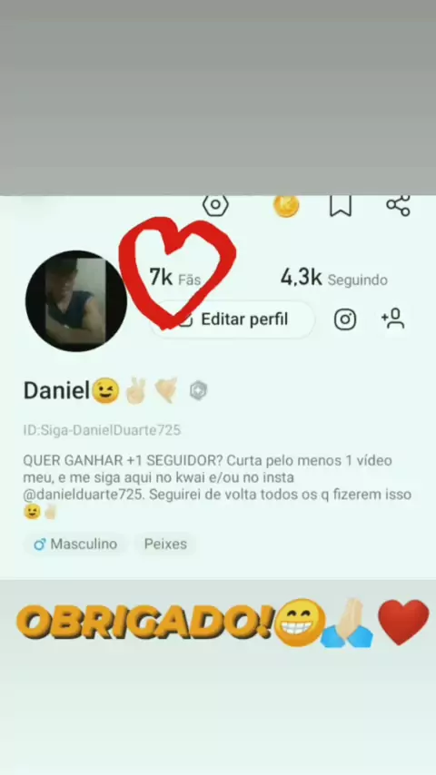 OBRIGADO A TODOS OS MEUS FÃS!🙏🏻❤️😁Sem vcs, isso não seria possível. Obrigado por cada curtida, pois quem curtiu os 2 vídeos mais recentes q eu posto e quem me seguiu após eu fazer isso, viu que eu realmente retribuo, obrigado por cada compartilhamento e comentário, vocês são importantes por serem parte de mim, não tenho palavras pra descrever o quão importantes vocês são. Obgd fãs!❤️🙏🏻☺️ #kwai #obrigado #Agradeço #amovcs #teamo