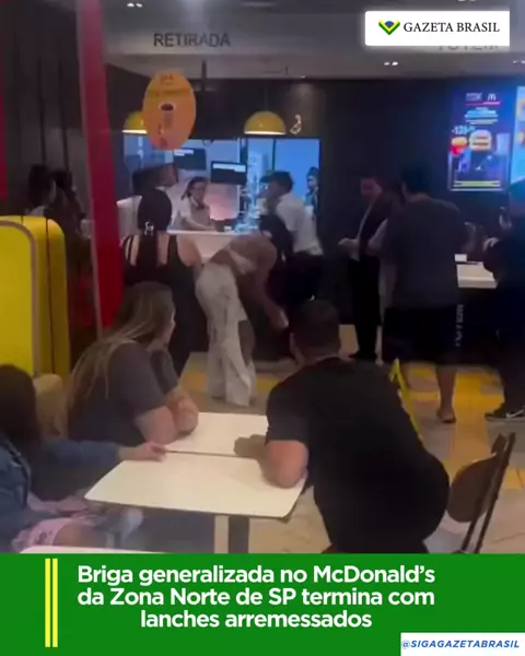 Funcionários e clientes se envolveram em uma briga com agressões físicas e verbais em uma unidade do McDonald’s na Vila Nova Cachoeirinha, em São Paulo, no sábado (13). Imagens nas redes sociais mostram funcionários e um casal discutindo e trocando objetos, enquanto uma criança chorava durante o desentendimento, que teria começado por causa de um lanche. O McDonald’s lamentou o episódio e afirmou estar apurando os fatos, mas não informou se registrará boletim de ocorrência.