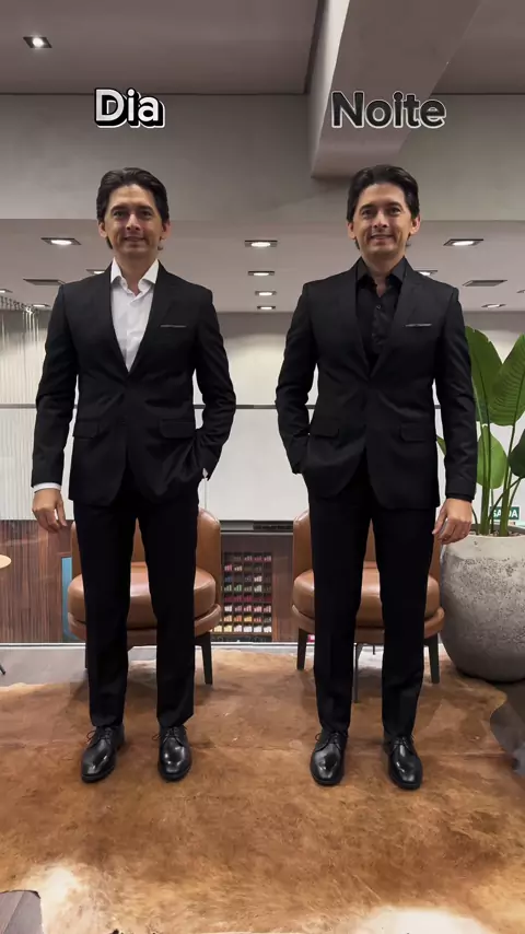 Traje tie less dia ou noite? ☀️🌃 Um mesmo traje Tie less, duas forma de usar!👔🔥 no vídeo, você confere o contraste e a diferença do look durante o dia e a noite. A luz, o ambiente e os acessórios transformam completamente a proposta do visual. Qual você prefere? Conta pra gente nos comentários!👇 #TieLess #estilomasculino #lookdiaenoite #ElegânciaVersátil #modamasculina