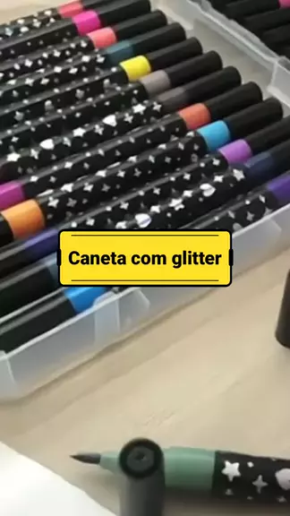 Caneta marcadora ponta dupla com glitter . . #voltaasaulas