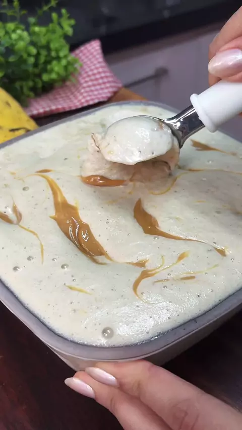 Sorvete cremoso em casa? É possível e mais fácil do que você imagina! Esse Sorvete de Banana é Doce de leite fica super cremoso e, juro, é um dos melhores que já comi! - 🤌😮‍💨 #sorvete #Receita #siltuzzi
