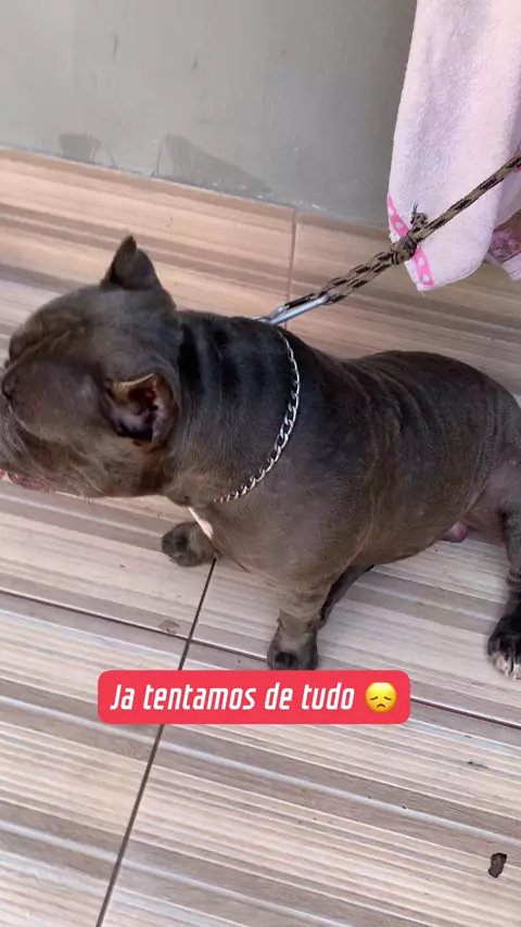 Ele sofre muito com a coceira 😩#SonecaAnimal #veterinária #AmericanBully🐶 #familia