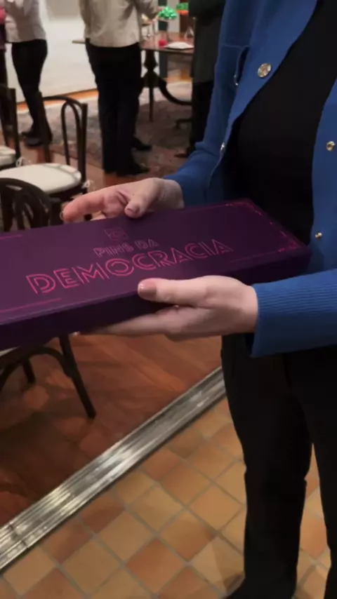 Presente maravilhoso! São pins que representam a nossa luta diária pela democracia, Constituição, Amazônia e por mais mulheres na política. Adorei o presente e usarei todos no @SenadoFederal 💜 Obrigada, @girlupbrasil_.
