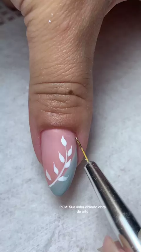 Banho de gel com decoração branca e dourado #FelizPascoa #alongamento #naildesigner #alongamentodeunhas #unhadegeldecorada