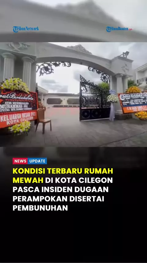 Suasana rumah mewah di perumahan Bukit Baja Sejahtera (BBS), Kota Cilegon yang diduga menjadi lokasi perampokan disertai pembunuhan pada Rabu, (17/12/2025) sekira pukul 09.47 WIB nampak terlihat sepi. Pantauan Jurnalis TribunBanten.com di lokasi, nampak beberapa orang duduk di halaman rumah. Karangan bunga ucapan belasungkawa juga tampak berjejer di depan halaman rumah mewah tersebut, mulai dari keluarga besar Partai Keadilan Sejahtera (PKS) Kota Cilegon, keluarga besar SD Islam Al-Azhar 40 Cil...