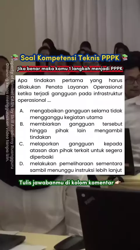 Berani kerjain soal ini gak? ๐Ÿค” Silakan tes kemampuan kamu dengan mengerjakan Soal Kompetensi Teknis PPPK berikut ini. Tulis jawaban kamu di kolom komentar! Jika benar, maka kamu 1 langkah menjadi PPPK ๐ŸŽ‰ Yuk persiapkan diri kamu bareng Bimbel CASN by Skill Academy Ruangguru. Konsultasikan secara GRATIS dengan cara KLIK LINK DI BIO atau kunjungi web skillacademy.com/casn ๐Ÿ‘‰๐Ÿป #pppk #pppk2026 #seleksikompetensi #casn #casn2026