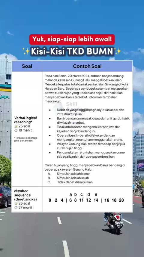 WAJIB SAVE! Kisi-kisi soal TKD di tes tahap 1 BUMN nih~ Cuma Rp35 ribu kamu udah dapet: ✅ Soal TKD, AKHLAK, dan Wawasan Kebangsaan BUMN ✅ Platform untuk tryout yang proper ✅ Pembahasan semua soal ✅ Skor dibandingkan dengan passing grade BUMN ✅ Tryout bisa dikerjakan ulang 🔗 KLIK LINK DI BIO Mau bimbel online langsung dengan instruktur atau kelas mandiri? Ada di link di bio juga ya 😉 #tkd #bumn #rekrutmenbersamabumn #bimbelbumn #tryout