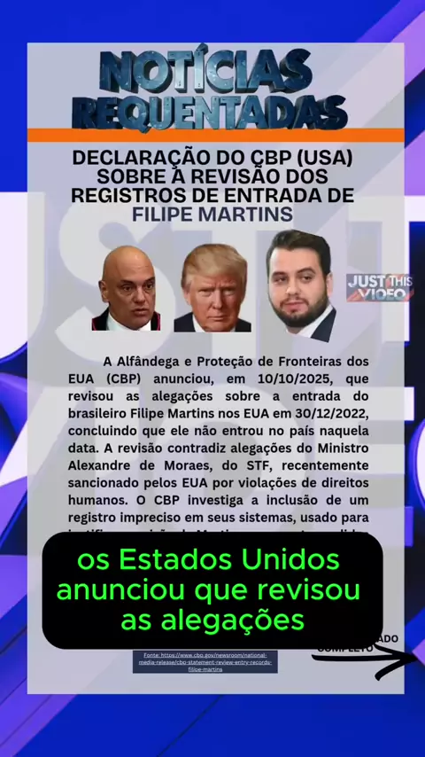 🇺🇸 Governo dos EUA revisa registro e derruba alegação usada por Moraes “Filipe Martins não entrou nos EUA naquela data” O erro pode custar muitos processos! #FilipeMartins #Moraes #DireitosHumanos #Noticias #Internacional