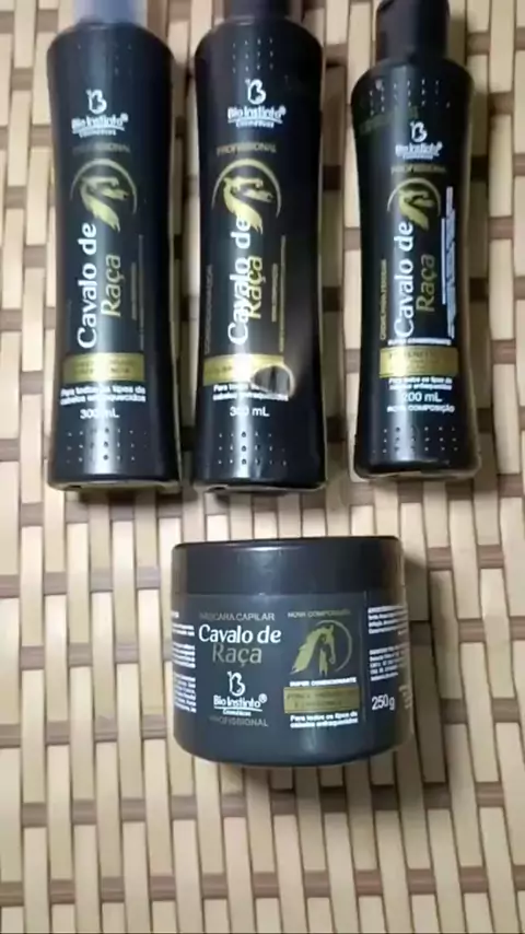 Kit Capilar Cavalo de Raça - Shampoo, Condicionador, Leave in, e Máscara Capilar e Spray Protetor Meu liso