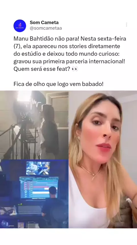 Manu Bahtidão segue a todo vapor e, nesta sexta-feira (7), apareceu no estúdio de gravação. A cantora revelou nos stories que gravou sua primeira parceria internacional. Quem será? 👀 Em breve, mais informações! . . . Gostou Desse Post? Siga @somcameta Para Mais Conteúdo! 😉 ( Reprodução/@francivaldosoarees) #brega #pará #cametá #somcameta #infosomcameta