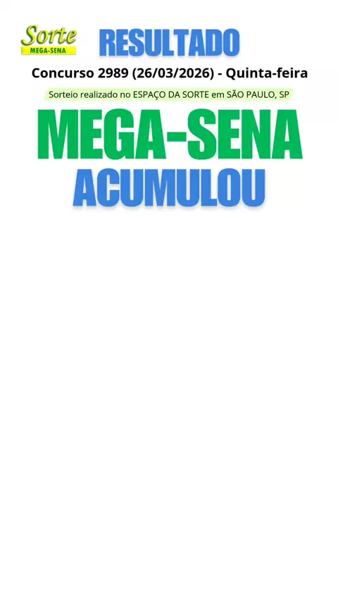 Resultado Mega-Sena concurso 2989 #sortemegasena #megasena #resultadomegasena #acumulou