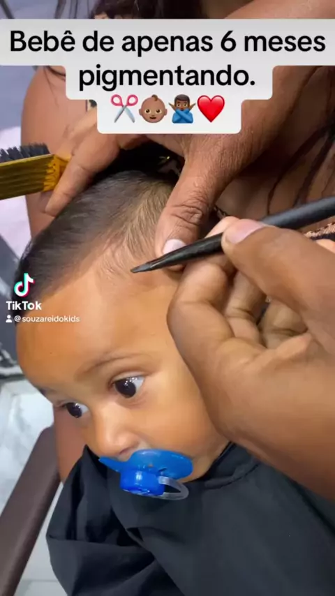 Bebê de apenas 6 meses pigmentando. 👶🏽❤️🙅🏾‍♂️✂️📏 #fade #bebê #famosos #CrescerKwai #tutorial