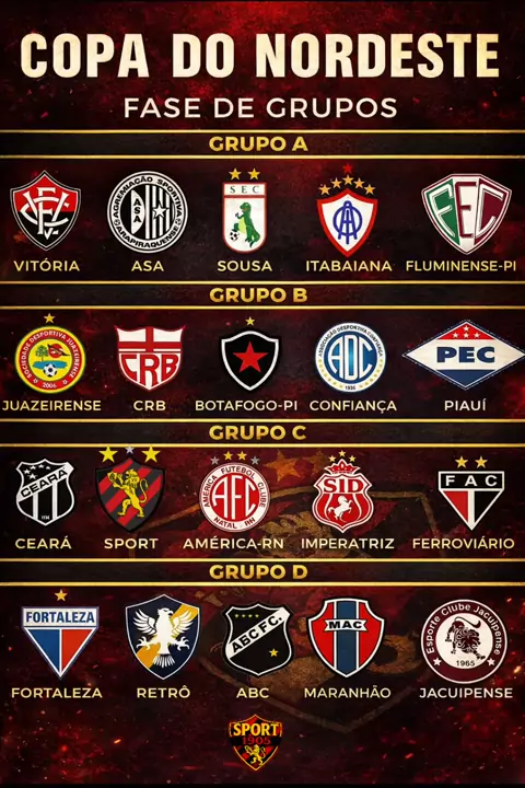 Olha a chamada! Olha a chamada! O Sport conheceu seu grupo e seus primeiros adversários na Copa do Nordeste de 2026! Vamos enfrentar os times do grupo D da competição, em jogos únicos, com mando de cada confronto a ser definido pela CBF. Vamos, Leão! #copadonordeste #sportmaiordonordeste #torcidadosport #sportclubdorecife #futebol