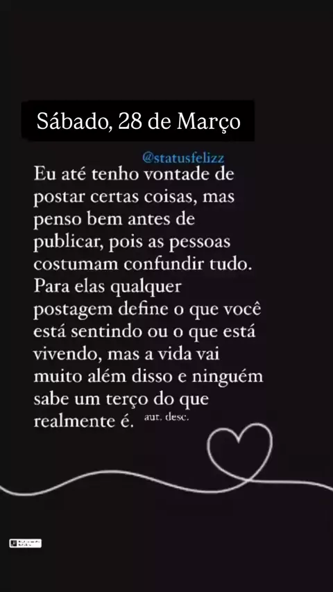 A vida é muito mais do que se vê nas redes sociais... E nem todo mundo posta para se exibir, às vezes são as pessoas que olham com inveja! 🥰. Bom Dia, amores ❤️. . . . . . #statusdodia #statusfeliz #frasedodia #deusnocomando #mensagemdodia