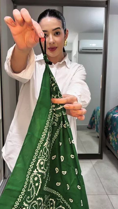 Truque para usar bandanas como blusa! 💚 #MODA #modafeminina #truquedeestilo #facavocemesmo #DIY