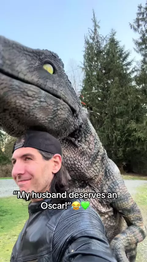 Todos dão ao meu marido uma grande salva de palmas!! # # funny # # funnyvideos # # funnyvideo # # funnymoments # # husbandwife # # dinosaur # # dino # # cosplay # # velociraptor # # lol # # lmao # # # # husband # # couplegoals # # lovehim # # trynottolaugh