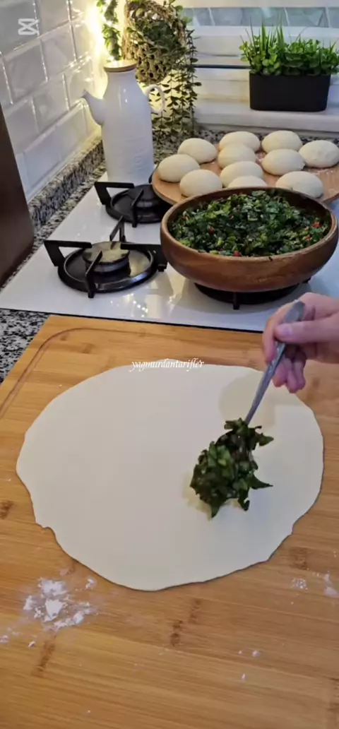 Ispanaklı Gözleme 🫓 Hamuru için; 2,5 su bardağı ılık su Yarım su bardağı süt Yarım paket instant maya 3 yemek kaşığı sıvıyağ 1 tatlı kaşığı tuz 7 su bardağı kadar un İç harcı için 1 kg ıspanak 1 adet soğan 1 adet kırmızı biber Tuz,karabiber ,kırmızı toz biber Tereyağı Hamuru hazırlayıp Yarım saat mayalandıralım. Bezelere ayırıp üzerini örtüp 10 dakika dinlendirin. Ispanağı güzelce yıkayıp ince ince doğrayın. Soğan ve kırmızı biberi de aynı şekilde ben el rondosunda doğmadım. Yarı...