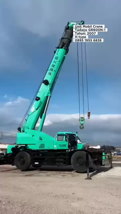Good working condition Import from Japan Unit Mobil Crane Tadano GR600N-1 Tahun: 2007 H-type Engine: 12,578hrs (low meter)#JualMobilCrane#MobilCraneBekas#MobilCraneMurah#CraneForSale#TruckCrane#PeralatanKonstruksi#JualBeliCrane#MobilCraneIndonesia#CraneSecondHand#peralatanindustri