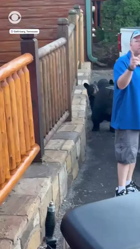 Um homem em Gatlinburg, Tennessee, ficou a poucos metros de um urso e dos seus dois filhotes enquanto ele subiu encima da caçamba da camioneta , roubando o saco de comida da sua família. #urso #familia #medo