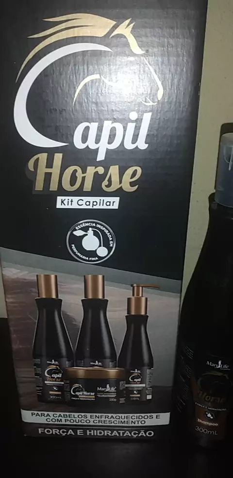 Crescimento Capilar com Capil Horse Fios de ouro promove uma esfoliação Capilar que estimulam o Crescimento dos folículos piloso crescendo mais fortes ,saudável e com brilho, haa se você sofre com queda capilar ele te ajuda controlar a queda ,deixando cabelos mais fortes ,brilhoso, ele contém Vitamina A- Antioxidante , Pantenol : Hidratação, Óleo de Rícino: Crescimento, Jaborandi: Tonificante, Queratina: Resistência, Biotina: Crescimento e Aleo Vera: Crescimento, não contém sal e vai na cx