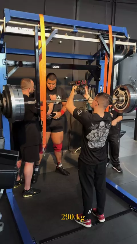 Último treino de agachamento 90% do Bitelo para o mundial 4 x 290kg