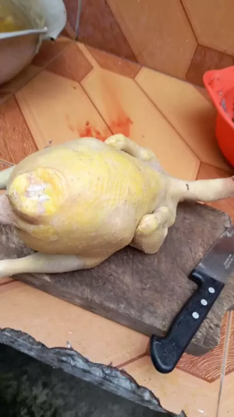 Limpando aquela galinha caipira, pro almoço.