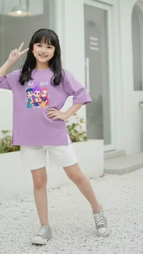 Try on atasan kaos oversize belah salit edisi huntrix #atasananak #huntrix #kpopdemonhunter