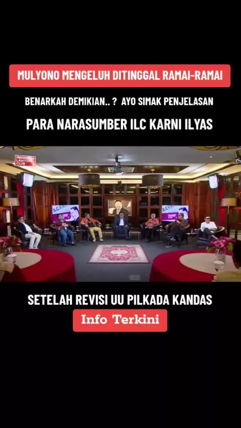 Mulyono Mengeluh Ditinggal Ramai-Ramai.. ! Benarkah Demikian..? Ayo Simak Penjelasan Dari Para Narasumber ILC Karni Ilyas.#infoterkini#ilc#revisiuupilkada#dedysitorus#karniilyas##terus#mulyono