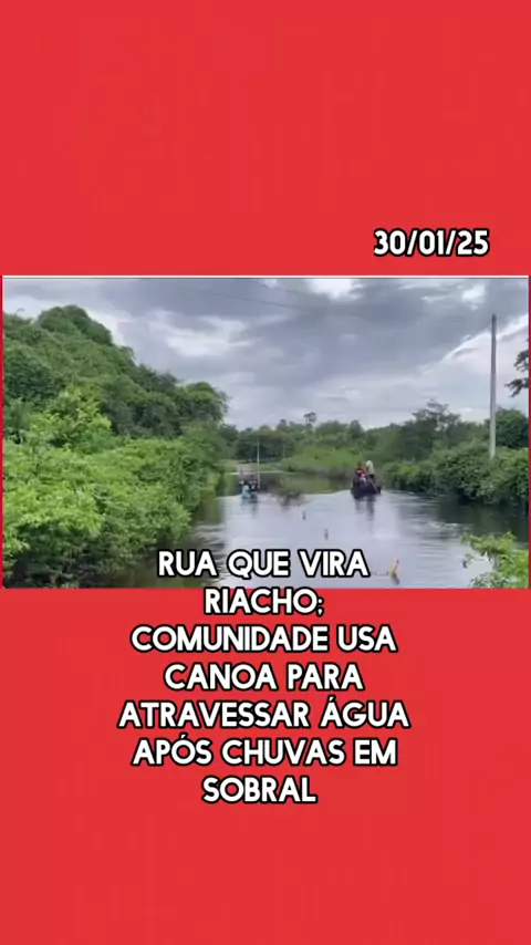 #rua #riacho #chuva #comunidade #noticias. Comunidade usa canoa para atravessar água após chuva em Sobral. 30/01/2025