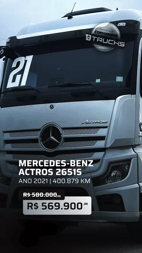 MB NEW ACTROS 2651 2021/2021 | 423.450km ➖➖➖➖➖➖➖➖ • Tração 6x4 • Freio Retarder • Suspensão Mola • MirrorCam • Pacote Streamline • Cabine Leito Teto Alto • Cambio Automático • Ar Condicionado Digital • Climatizador • Volante Multifuncional • Painel Multimídia • Chave de Presença • Carregamento por Indução • Geladeira • Calçado de pneus ➖➖➖➖➖➖➖➖ R$569.000,00 Descubra a excelência da qualidade sobre rodas🛞 📞 Contato: (41) 98841-8948 📍 Localização: Av. Rui Barbosa, 12887 - Colônia Rio Grande,