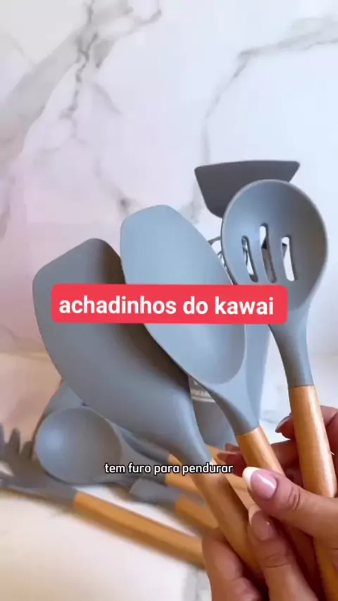 Kit C/5/12 Peças Utensílios De Cozinha Colheres Espatula Silicone Cabo Madeira Decoração Livre BPA #kwaishop #EstrelaDeFamília #vira𝑙