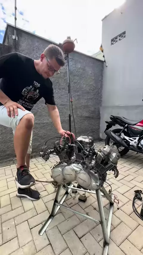 C0RTAND0 GIRO no Motor TriTan 510🔥🔥 3 cilindros Caseiro😱😱😱 #tdsgarage #criatividade #curiosidades #swap #titan