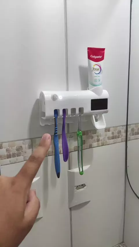 Porta Escova de dente com aplicador de pasta e esterilizador UV e Antibacteriano. #escovadedente #portaescova #rankingblackfriday #VozPretaEcoa #kwai