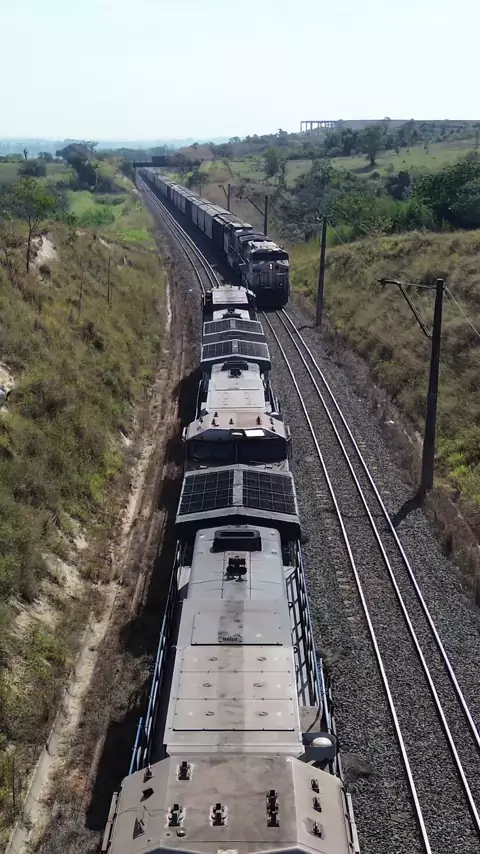 FIQUEI IMPRESSIONADO COM ESTE CRUZAMENTO DE TRENS, OLHA A QUANTIDADE DE VAGÕES ESTE TREM CONSEGUE LEVAR