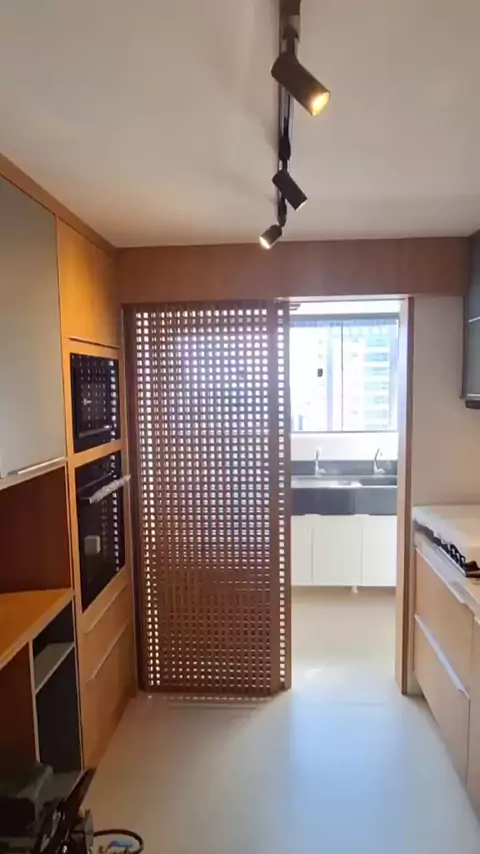 olha essa linda divisória vazada #designdeinteriores #marcenaria #marceneiro #cozinha #planejados