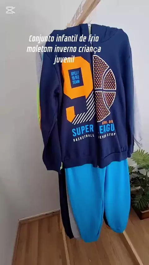 Conjunto infantil de frio moletom inverno criança juvenil