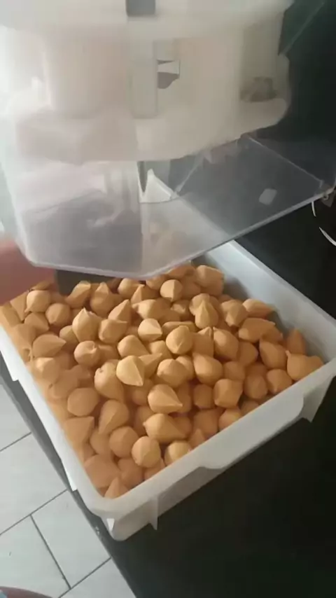 Produção de mini coxinhas na modeladora. #coxinha #salgados
