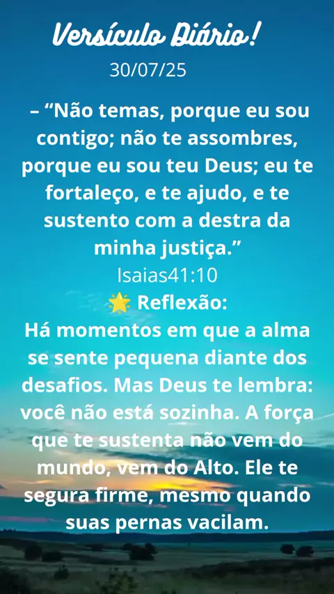 💫 Em tempos de medo e incertezas, confie: Deus está contigo. Ele te sustenta, te fortalece e jamais te abandona. Respire fundo, sinta a presença d’Ele e siga. #VersículoDoDia #DeusÉComigo #Isaías41 #FortalezaEspiritual #FéQueAcalma