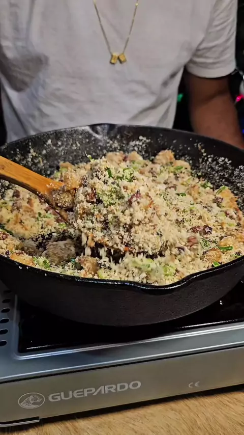 Farofa de Natal, bacon com abacaxi 🥓 🍍 INGREDIENTES 👇🏼 300 gr de bacon 600 gr de abacaxi 1 Cebola grande 4 Dentes de alho 1 Colher de manteiga 0.400 gr de farinha Cebolinha Pimenta do reino e sal a gosto #farofa #bacon #abacaxi #farofadenatal