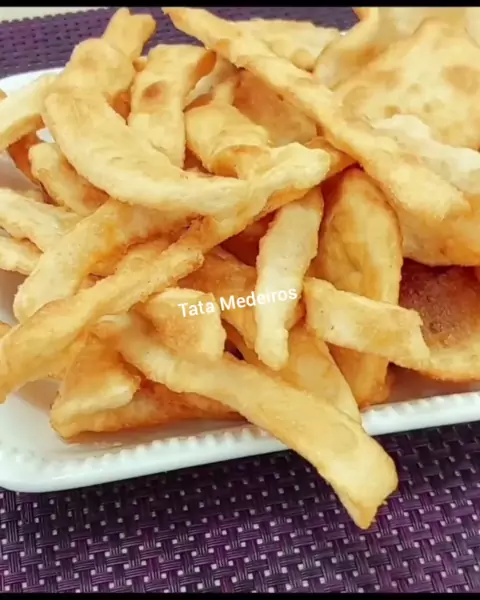 Só usei, farinha, água e sal, e fiz essa massinha frita delicisa pra lanchar #KwaiCriador