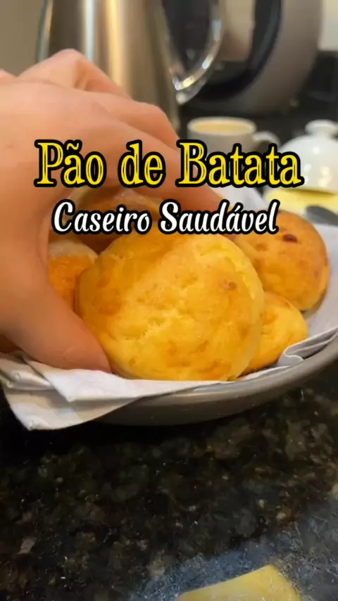 Receitas Quantidade  3 batatas cozidas - sal ( na água pra cozinhar as batatas) - 1 ovo - 1/2 xícara (chá) de parmesão ralado grosso - 1/2 cl (sopa) de sal - 2 1/2 xícaras (chá) de leite ninho INTEGRAL (rótulo azul) - 1 cl (sopa) de fermento químico - requeijão pra rechear - azeite pra untar as mãos #Receita #pao #caseiro #batata #fit