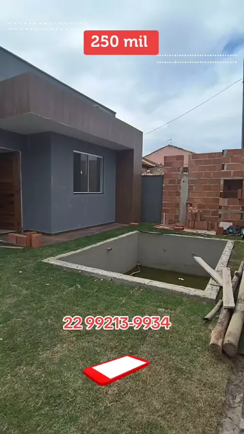Casa em Unamar-RJ Proximo ao Super Market R$250.000 2 quartos (uma suíte) Sala com cozinha americana Banheiro social Área de serviço Área gourmet Piscina de alvenaria Área externa com grama #viraliza #imoveis #altopadrão #Financiamento #maisviews