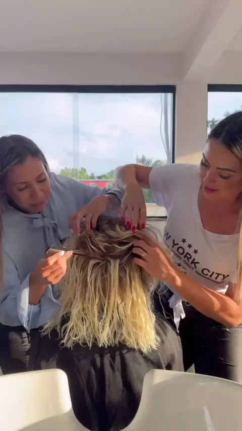 #mechas #cabelos #blonde #Loira Thaís pediu mechas saindo lá de dentro do couro cabeludo #BomPraKWAI
