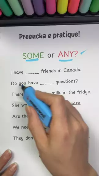 Você sabe quando usar SOME ou ANY? Faz esse exercício aqui nos comentários e bora treinar de verdade! (Some = afirmativas | Any = negativas e perguntas) #InglêsPrático #SomeOrAny #GramáticaInglesa #TeacherNajila
