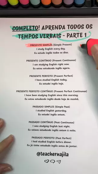 Aula de Inglês, Verbos no Presente e no Passado em inglês. Aula rápida e prática de inglês. #inglesfluente #inglesrapido #ingles #teachernajila