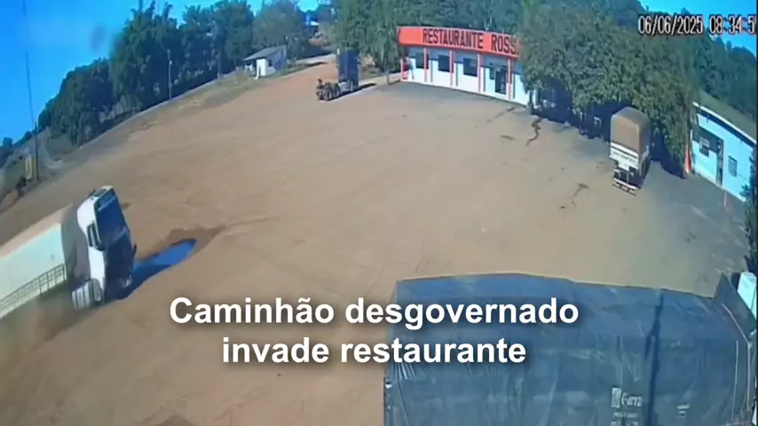 Um motorista embriagado na estrada atingiu um caminhão, que acabou invadindo um restaurante no Brasil. #Caminhão #Desgovernado #Invade #Restaurante #TruckCrash