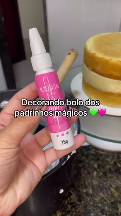 Decorando bolo dos padrinhos mágicos 💚🩷 #bolo #chantilly #confeitaria