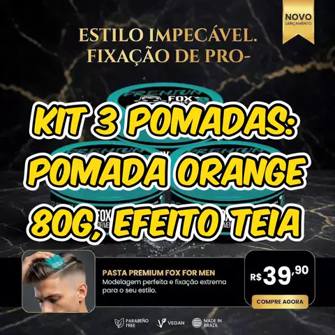 Kit 3 Pomadas: Pomada Orange 80g, Efeito Teia 80g e Premium 80g - Fox Barbearia… #viral