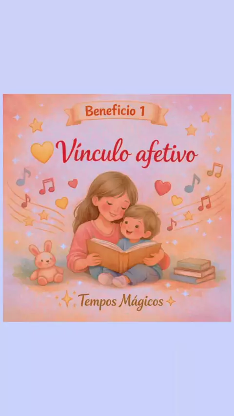 “Você lê ou canta para a criança todos os dias? 💛🎵📚 Esse momento simples fortalece o vínculo afetivo, cria segurança emocional e marca a infância para sempre. Benefício 1 da série Música e Leitura na Infância ✨ #MusicaELeitura #VinculoAfetivo #InfanciaComAfeto #TemposMagicos #MusicalizacaoInfantil